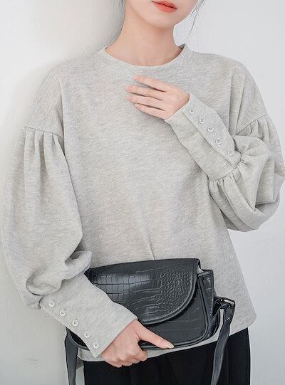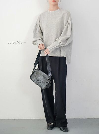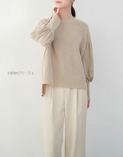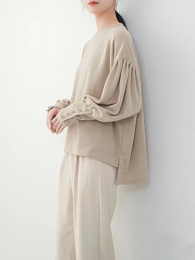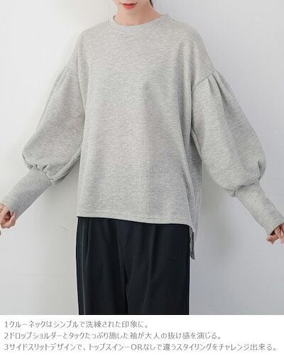 バルーン袖 ブラウス 長袖 トップス レディース Tシャツ ボリューム袖 カットソー 袖口ボタンづき バルーンスリーブ パフスリーブ プルオーバー サイドスリット 前後差 オシャレ きれいめ 大人可愛