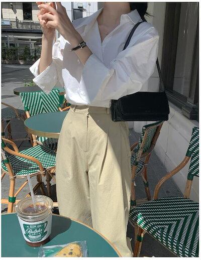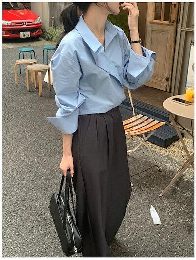 シャツブラウス レディース 春 秋 長袖 通勤 韓国風トップス ボタン 着痩せ オフィス きれいめ オシャレ 大人 ゆったり シンプル 無地 カジュアルコーデ 大きいサイズ ガーリー 体型カバー 着回