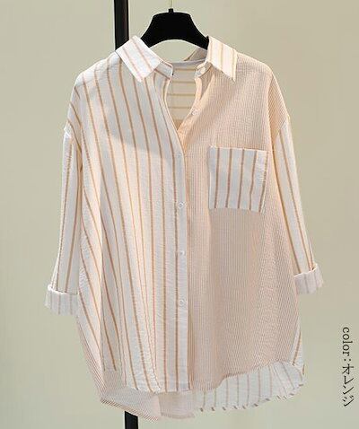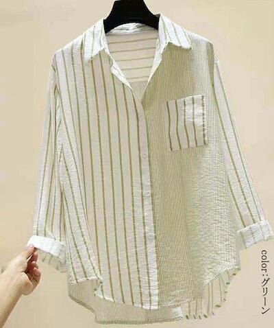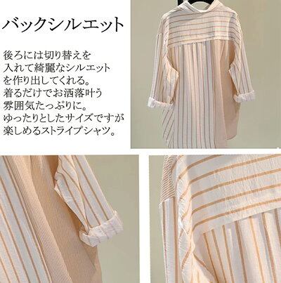 ストライプ シャツ レディース 春 秋 切り替えシャツ 折り襟 デザインシャツ 切り替え シャツ 前開き 春 トップス 長袖 羽織り ボタン付き ブラウス 全開 コート デザイン レイヤード アウタ