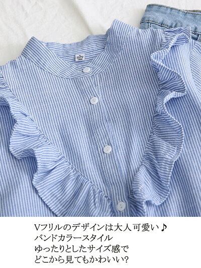 シャツ ブラウス レディース フリル 長袖 シャツブラウス チュニック 長袖シャツ バンドカラー ゆったり ナチュラル カジュアルシャツ ボタン留め カジュアル ブラウス 大きいサイズ きれいめ 春
