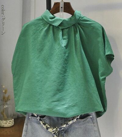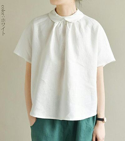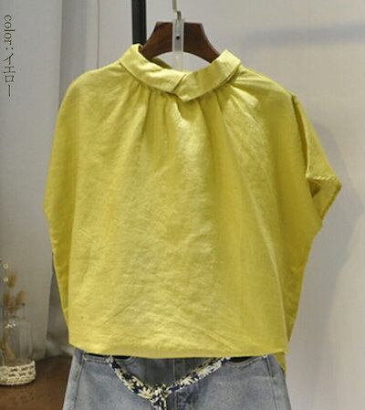 リネン シャツ ブラウス 可愛い 半袖 カジュアル シャツブラウス レディース 折り襟 綿麻シャツ 無地 シンプル ナチュラル リネンブラウス ゆったり リネンシャツ ギャザー 大きいサイズ ボタン