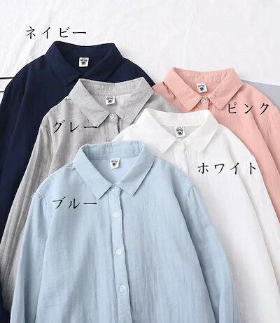 ダブルガーゼ シャツ ブラウス レディース ガーゼ 長袖 カシュクール 綿100% 長袖シャツ 折り襟 ボタン留め アウター ライトアウター 薄手 無地 カジュアルシャツ ゆったり トップス コットン