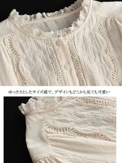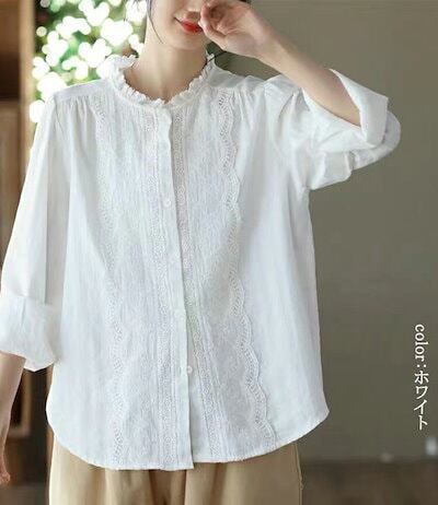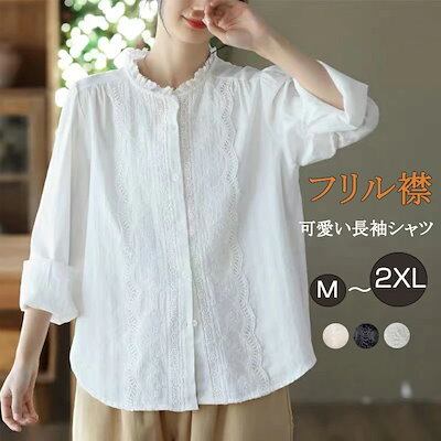 シャツ ブラウス レディース フリル襟 長袖 シャツブラウス チュニック 長袖シャツ 刺繍 ゆったり ナチュラル カジュアルシャツ ボタン留め 通気性 カジュアル ワイシャツ ブラウス 大きいサイズ