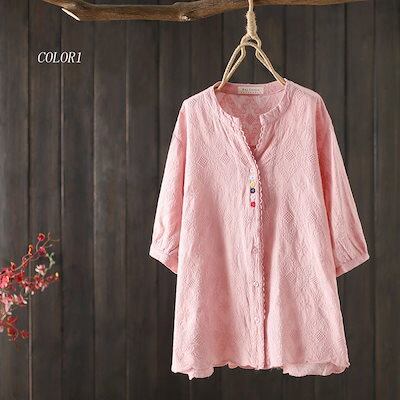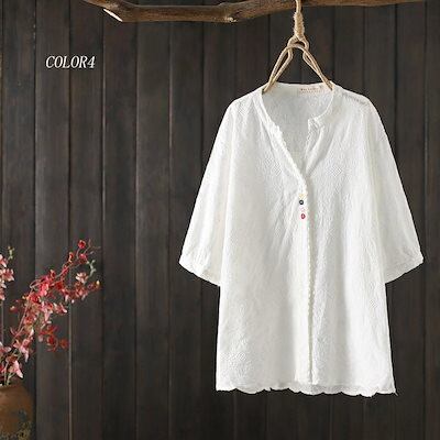 シャツ 綿シャツ ブラウス 無地 刺繍 半袖 ボタン留め 夏 レディース トップス 通勤 タック コットン 薄手 スキッパーカラー 20代 30代 オシャレ きれいめ ゆったり カジュアル