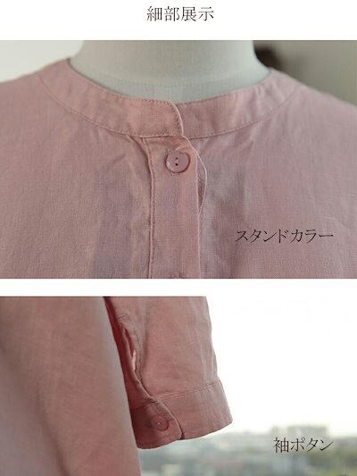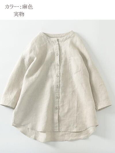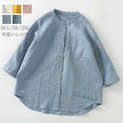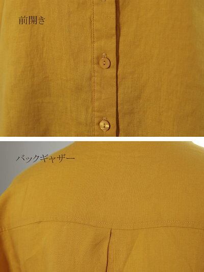 シャツブラウス レディース 春夏 シャツ 春物 ブラウス 七分袖 前開き バックギャザー 体型カバー スタンドカラー 羽織り 袖ボタン 前後差 裾フレア ラウンドヘーム 無地 クルーネック きれいめ