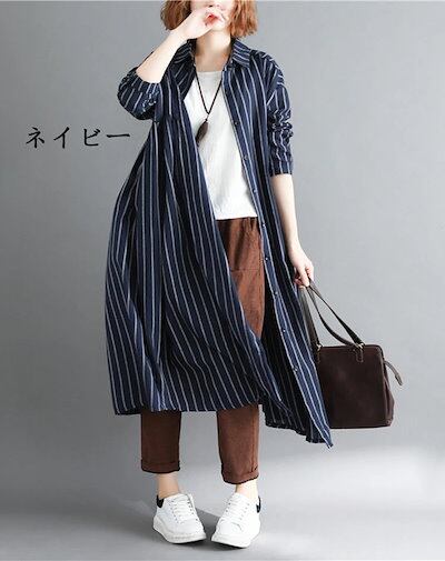 ストライプシャツ レディース 長袖 ロングシャツ 夏 開襟 折り襟 ボタン留め 長袖シャツ 薄手 カーディガン ゆったり カジュアルシャツ ロング ドロップショルダー 羽織り アウター ライトアウター