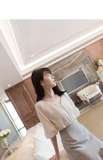 ブラウス レディース 半袖 プルオーバー Vネック フレンチスリーブ リブ シャツブラウス ブルーン袖 肩ゴム付き 前開け ボタン止め シフォンブラウス 五分袖 透け感 フェミニン レトロ トップス