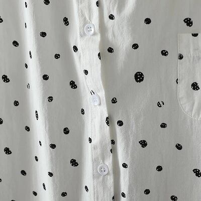 ドット柄 総柄 シャツ 長袖 レディース 襟付き きれいめ フリル 綿 コットン 羽織る 羽織れる トップス レギュラーカラー シャツブラウス ボタン 前開き 柄 ギャザー 体型カバー ゆったり ライ