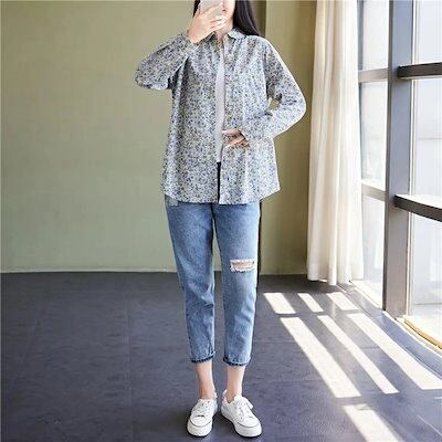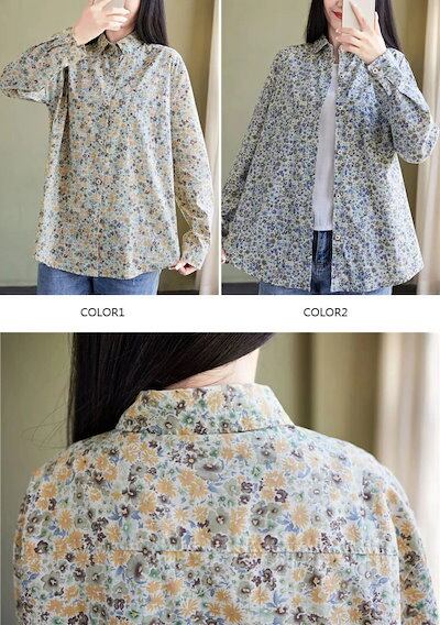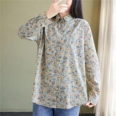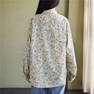 花柄 シャツ 綿 レディース 長袖 花柄シャツ 春 秋 折り襟 長袖シャツ 全開 フラワー 綿シャツ プリント カシュクール トップス 夏 ボタン 前開き 羽織り 羽織 羽織りもの カーディガン カジ