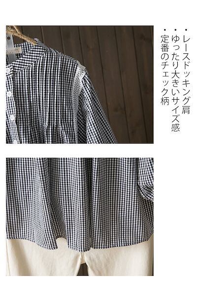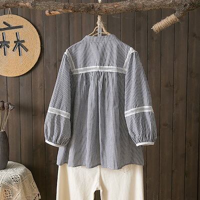7分袖 シャツ レディース ワイシャツ バルーン袖 トップス バンドカラー シャツブラウス 七分袖 ボリューム袖 ボタン ブラウス ギャザー ピンタック プルオーバー チェック柄 無地 綿 コットン