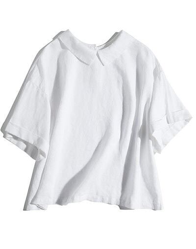 リネンシャツ レディース 襟付き 前後2way ボタン付き 半袖 半袖シャツ トップス シャツ Tシャツ ブラウス シアートップス 麻 折襟 麻シャツ ショート丈 着痩せ 通気性 大きいサイズ 通勤