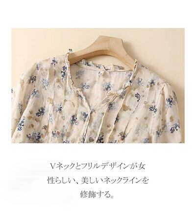 リネン シャツ ブラウス 半袖 レディース シャツブラウス 大きいサイズ Vネック 五分袖 フリル 夏ブラウス 麻 タック入り ボタン プルオーバー ゆったり ふんわり 薄手 トップス 花柄 通気性良