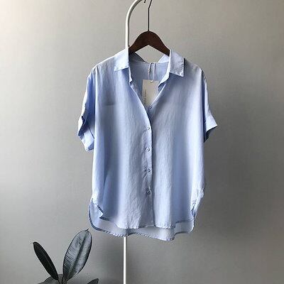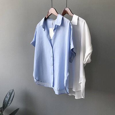 リネンシャツ シャツ リネン ブラウス レディース トップス 折襟 無地 ホワイト ブルー ボタン付き 楽ちん チュニック 大きめ 体型オバー おしゃれ ゆったり 大きいサイズ