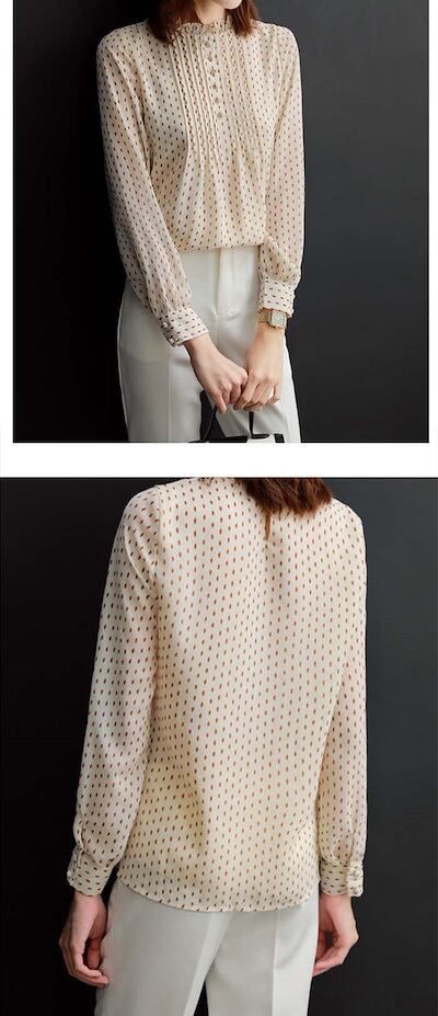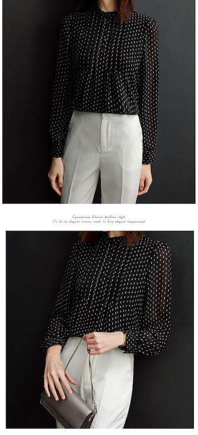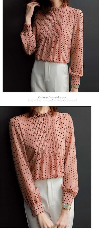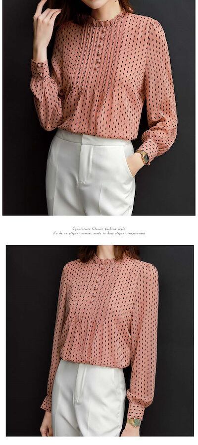 シャツ レディース ブラウス 長袖 ドット柄 長袖 水玉 シフォン 前開き ゆったり 柔らか シンプル ボタン 通気性 大きいサイズ 通勤 OL きれいめ エレガント おしゃれ 通学 ビジネス 春 夏