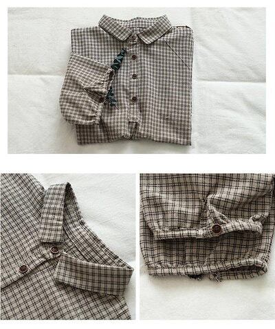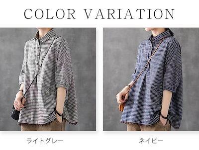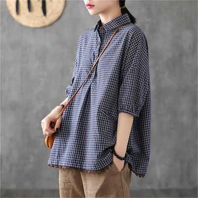 綿麻風 シャツ ブラウス レディース 半袖 シャツブラウス おしゃれ シャツ レディース シャツブラウス レディース 大きいサイズ チェック ゆったり トップス ボタン 綿麻調 裾レース切り替え レト