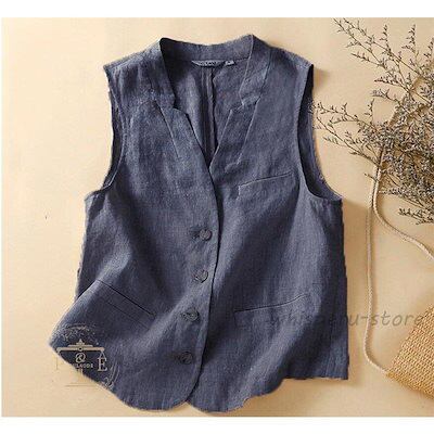 新規販促綿麻ベスト レディース ベスト 綿麻風 リネン ジレ ジレベスト 薄手 サマージャケット ノースリーブ 春夏 夏 20代 30代 40代 50代