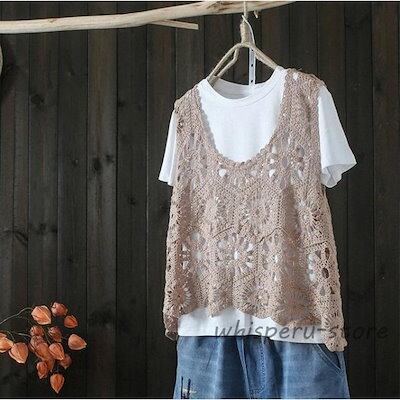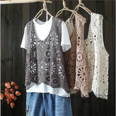 新規販促ベスト レースベスト レディース 春 夏 40代 花柄レース タンクトップ トップス vネック 透かし編み 薄手 重ね着 ベストノースリーブ タンク 春コーデ