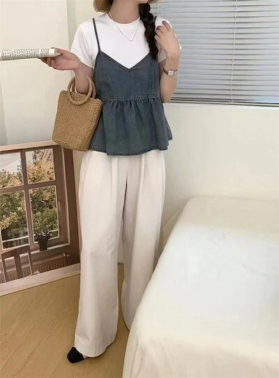 ベスト レディース デニム ショート丈 レディース 春夏 薄手 デニムベスト ショート フレア 可愛い ショートベスト 女の子 レトロ 重ね着 ゆったり ペプラム フレアベスト