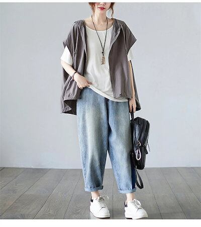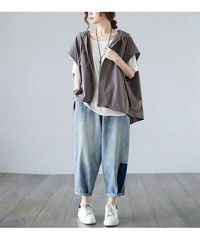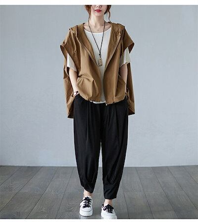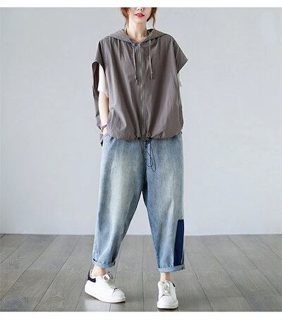ベスト レディース パーカー ジレ 春夏 ジレー フード付きベスト 春 コーデ 前開き ドルマンスリーブ パーカーベスト 薄手 ノースリーブパーカー パーカーベスト 大きいサイ