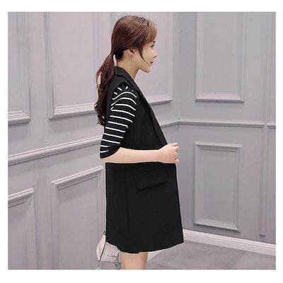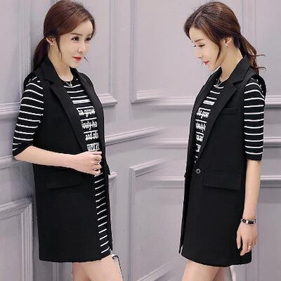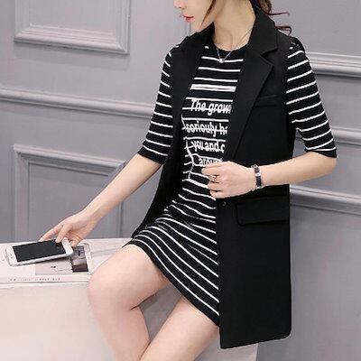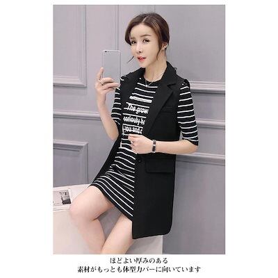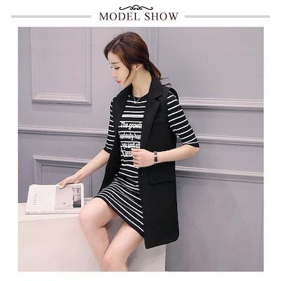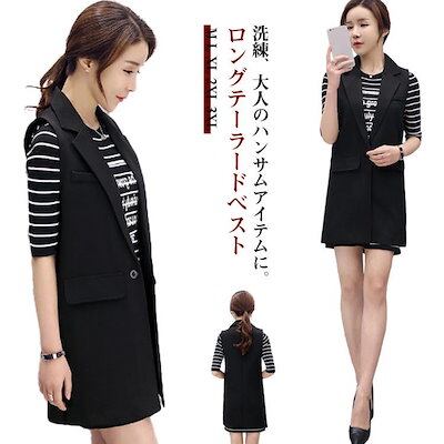 レディース スーツ 夏 ロングジレ カーデ きれいめ ブラック ノースリーブ 卒業式 フォーマル ロングベスト ロング丈 春 ベスト アウター トレ