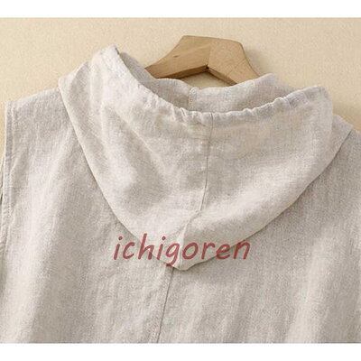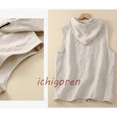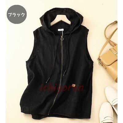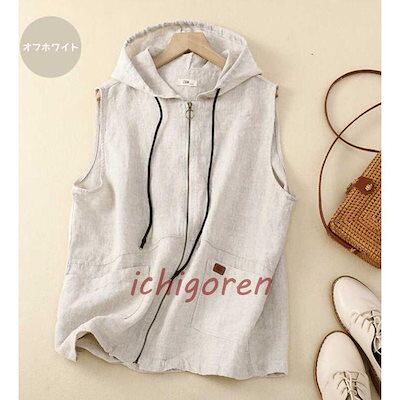 ベスト レディース ノースリーブ パーカー 春夏 パーカーベスト ジレベスト フード付き 前開き ジップパーカー カジュアル 綿麻風 ポケット付き