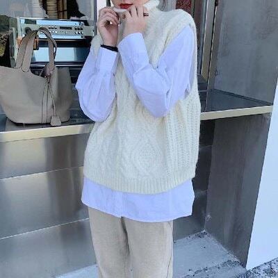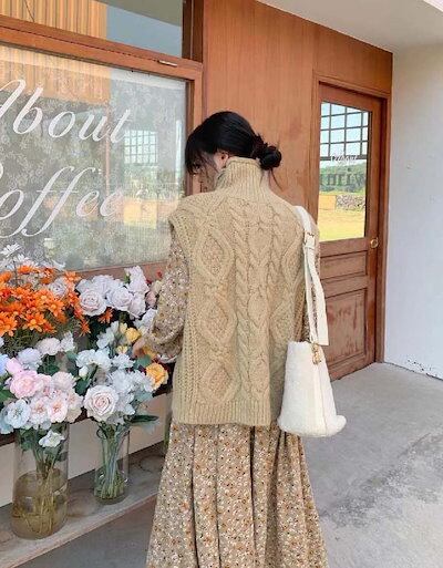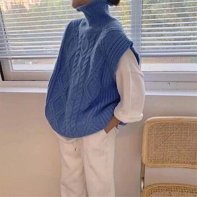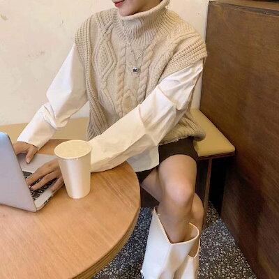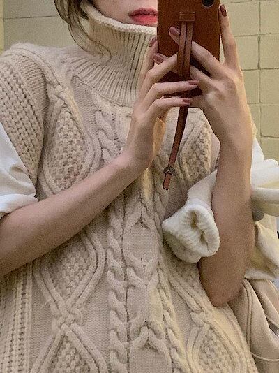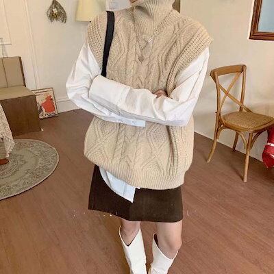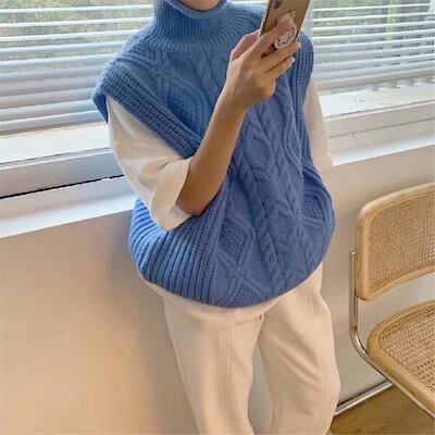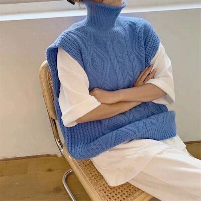 ハイネック ニット ベスト レディース 春 秋 ケーブル編み ニットベスト タートルネック トップス ニット ベスト ノースリーブ 無地 シンプル フリー 着回し力 体型カバー 着心地 普段着 通勤