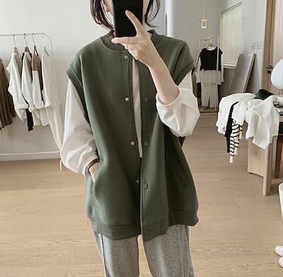 スウェット ベスト 秋 春 レディース トップス ジャケット ノースリーブ アウター 秋 冬 無袖 羽織り ベスト ジレ スウェット 大人 ゆったり 体型カバー 大きいサイズ シンプル カジュアル 柔