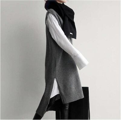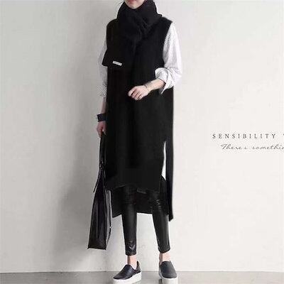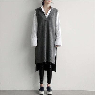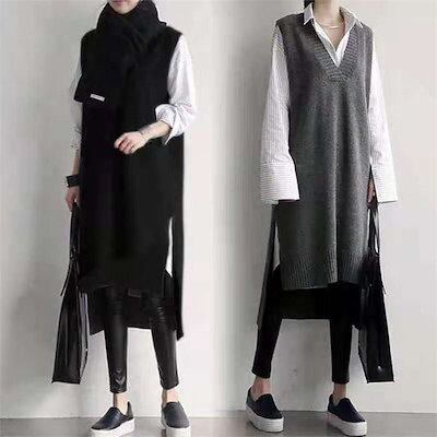 ニットベスト ワンピース 春 秋 冬 ベストワンピース レディース ニット タンクトップ ワンピース vネック 重ね着 ベストノースリーブ タンク 春コーデ 着痩せ 美シルエット レイヤード オシャレ