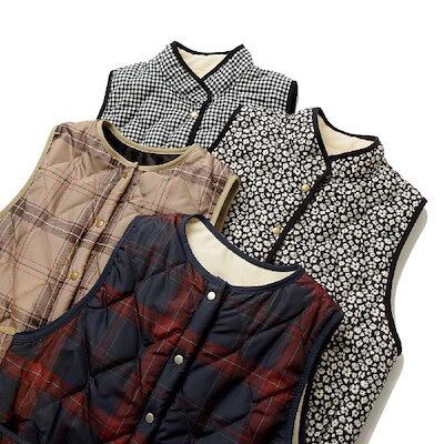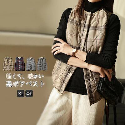 ベスト レディース 裏ボア ベスト ノーカラー スタンドカラー インナーベスト 撥水 発熱 吸湿 チェック 小花柄 シンプル 春 秋 アウター 軽い ショート ノースリーブ コート あったか 暖か