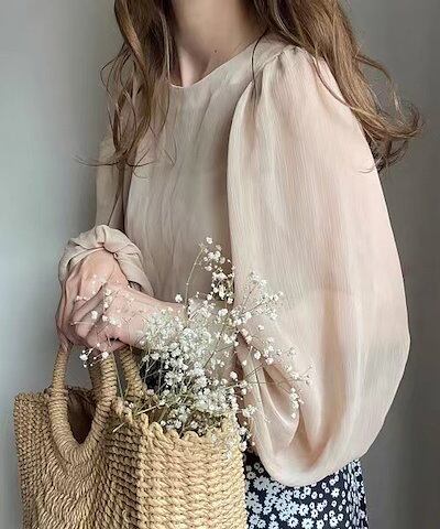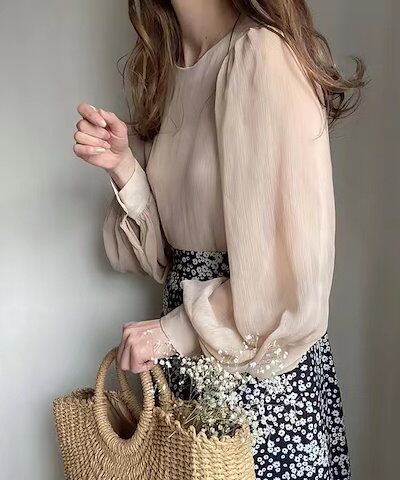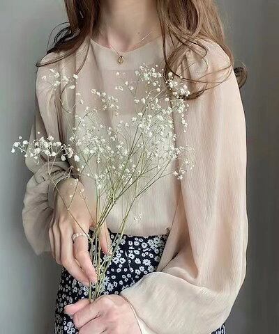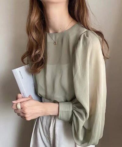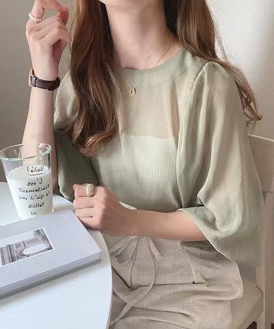 ブラウス レディース シアー ブラウス 春 夏 透け感 トップス 2点セット インナーキャミ付き 薄手 透け感 重ね着 シャツ ブラウス 長袖 ボリューム感 夏 コーデ シンプル レイヤード風 ゆっ