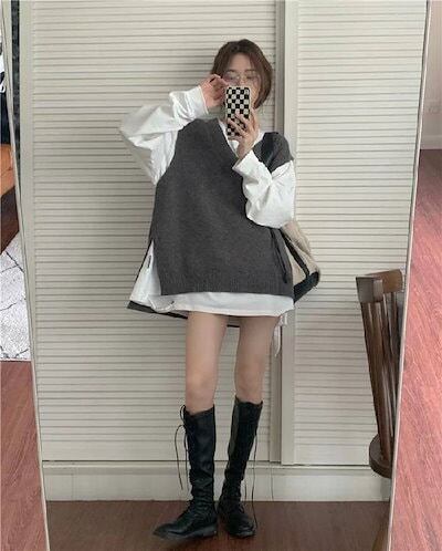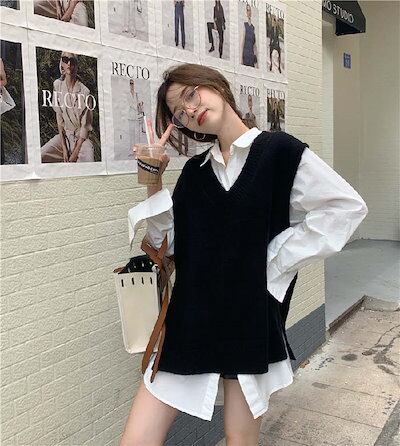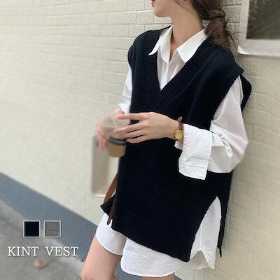 ニットベスト レディース 春 秋 ニット タンクトップ トップス vネック 重ね着 ベストノースリーブ タンク 春コーデ 大きいサイズ 体型カバー ビッグシルエット 着痩せ 美シルエット レイヤード