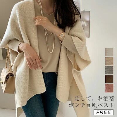 ニットベスト レディース 大きいサイズ ポンチョ 前開き ニットトップス 春 秋 ニット ポンチョ ベスト Vネック ノースリーブ シンプル 無地 カジュアル レイヤード 重ね着 ゆったり ゆるっと