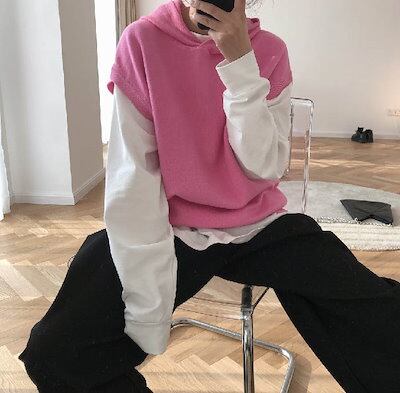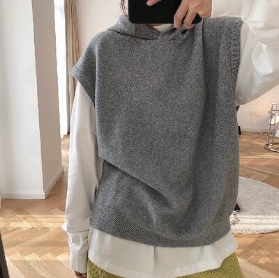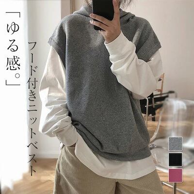 ニットベスト レディース 春 秋 フード付き パーカー ニット ノースリーブ ベスト トップス 重ね着 ベスト ノースリーブ レイヤード風 無地 シンプル ゆったり 大きいサイズ カジュアル おしゃ