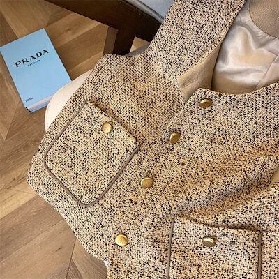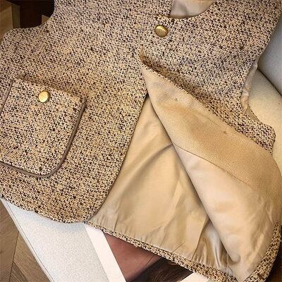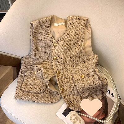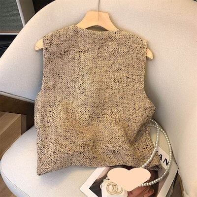 ベスト レディース ツイード調 春 秋 ベスト ジレ トップス コート ショートベスト ノーカラー ポケット付き 前開きベスト ツイードジレ ノースリーブ レディース 大人 柔らかい シンプル 通勤