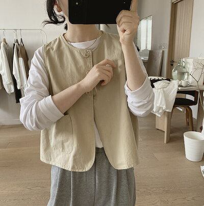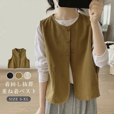 ベスト レディース 春 秋 ノーカラー トップス ノースリーブ 重ね着 ジレ ベスト 無地 ジレンチ 大きいサイズ 体型カバー レイヤード シンプル カジュアル ゆったり 着回し トレンド モード