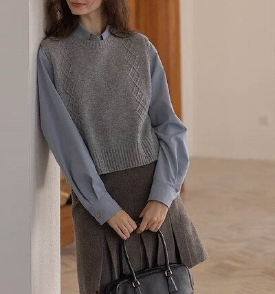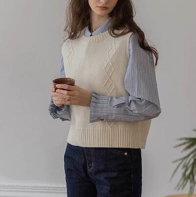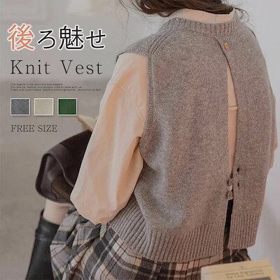 ニットベスト レディース 春 秋 冬 ニットタンクトップ バックジャン 後ろボタン ニット タンクトップ トップス 重ね着 ベスト ノースリーブ タンク レイヤード レイヤード風 ニットタンクトップ