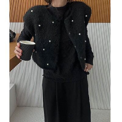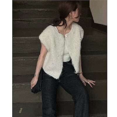 ニット ベスト レディース 春 秋 前開き ニット ベスト バール付き トップス 重ね着 ベスト ジレー バール付き ノースリーブ レイヤード風 無地 シンプル カジュアル おしゃれ 着回し 体型カ