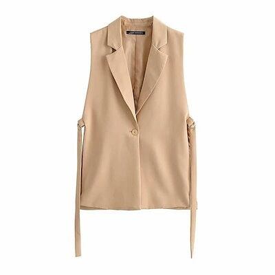 ベスト ジレ レディース 春 秋 ノースリーブ 無地 ジレンチ スリット トップス レディース ジレ 春 秋 大きいサイズ ゆったり シンプル カジュアル きれいめ オフィス フォーマル 大人 OL