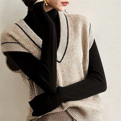 ニットベスト ベスト レディース 春 秋 冬 ニット タンクトップ トップス vネック 重ね着 ベストノースリーブ タンク 春コーデ 着痩せ 美シルエット レイヤード シンプル カジュアル ゆったり