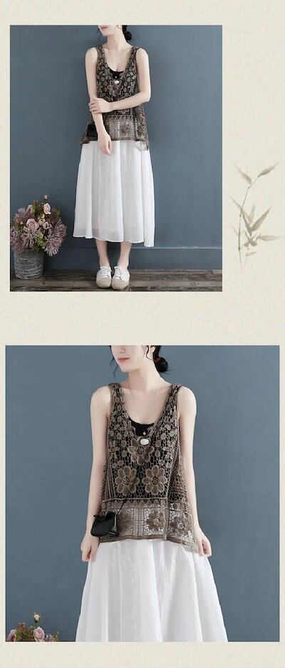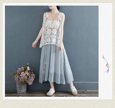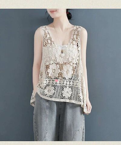 ベスト レディース 春 夏 透かし彫り レース タンクトップ トップス Aライン vネック 透かし編み 薄手 透け感 重ね着 ベストノースリーブ タンク 春コーデ ショート丈 シンプル レイヤード風