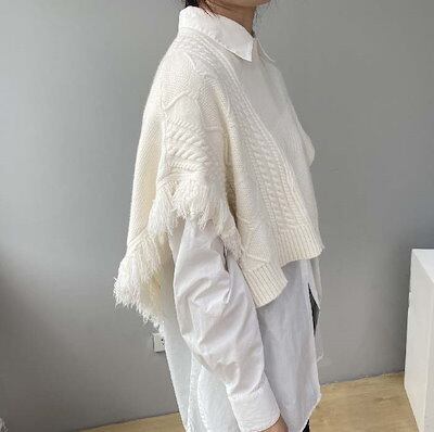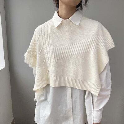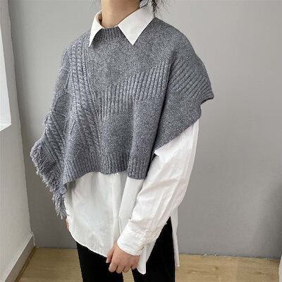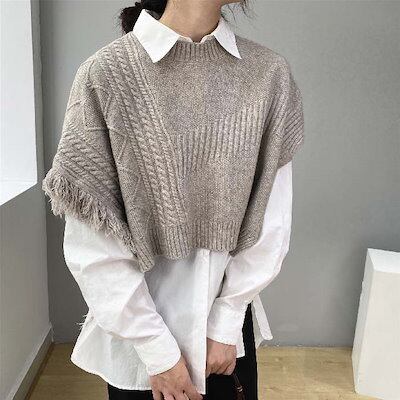 ニットベスト ベスト レディース ポンチョ ニット レイヤード 重ね着 フリンジ ベスト 春 秋 ニット タンクトップ トップス ドルマンスリーブ 重ね着 ノースリーブ タンク フレンチスリーブ ラ