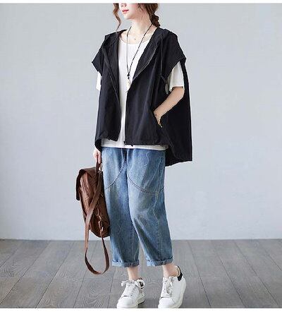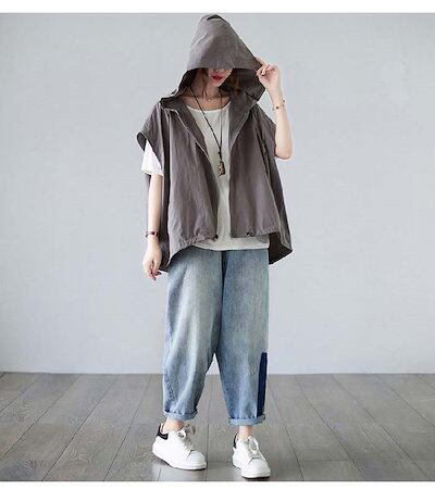 ベスト レディース 春 秋 ショート丈 フード付き ノースリーブ トップス ベスト 無地 ジレンチ トップス レディース ジレ ブルゾン 無袖 フード付き 春秋 大きいサイズ ゆったり シンプル