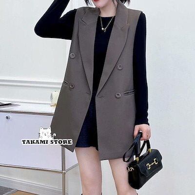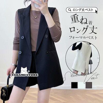 【制服標準装備】ベスト ジレ フォーマルベスト ロング丈 レディース 春 夏 秋 テーラード トレンチ オフィス ノースリーブ アウター カーディガン 羽織り 重ね着