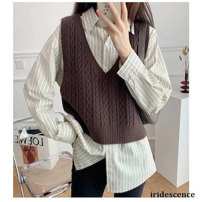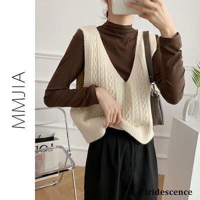 【迅速な出荷】ニット ベスト レディース チョッキ トップス 春 秋物 ジレノースリーブ ショート丈 通勤 リブ編み スリット 韓国風 シンプル 普段着 30代 40代 50代 50代2(個)ごとに1