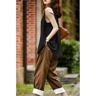 新作 シフォン テーラードベスト ジレ ベスト レディース 春 夏 春 バック プリーツ 切り替え おしゃれ トップス ベスト アウター サマージャケット ノースリーブ 前