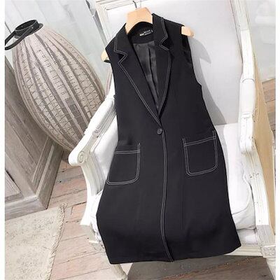 限定SALE!ステッチ ロングジレ ジレ レディース 春春 テーラードベスト ロングベスト ノースリーブ バックリボン付き オシャレ 春 夏 春 前開き おしゃれ ジレベスト 大き