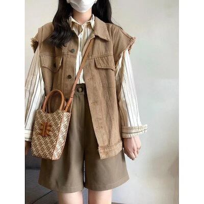 3月新品(大セール)ベスト レディース デニムベスト ノースリーブ オーバーサイズ ジャケット ジレ 羽織り ゆったり ドロップショルダー ベスト 春 カジュアル 秋 アウター 重ね着 レイヤード 薄