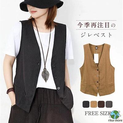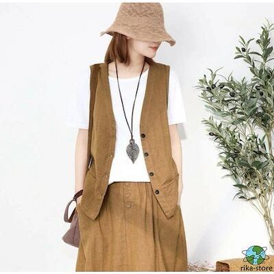 出荷が早いリネン ベスト レディース ジレ レディース ベスト レディース 春夏 おしゃれ ベスト 夏ベスト 前開き トップス ゆったり 羽織り カジュアル