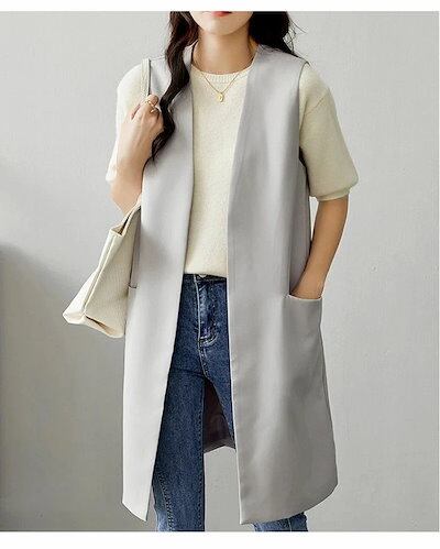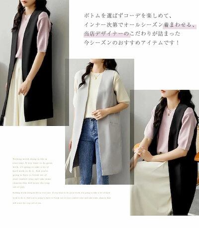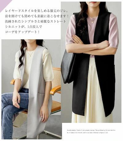 ジレ ベスト レディース 春夏 前開き ロングジレ テーラードベスト ノースリーブ ロングベスト ジレジャケット おしゃれ エレガント フォーマル カジュアル 通勤 OL 黒 グレー 秋