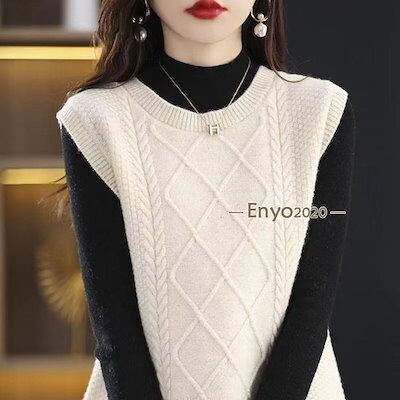 ニットベスト レディース トップス 無地 クルーネック 女性 ノースリーブ セーター Uネック コーデ カジュアル 女性 おしゃれ ファッション 春